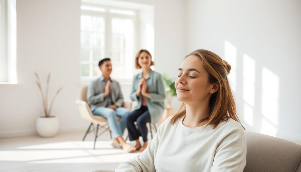 Respiração diafragmática e meditação mindfulness são eficazes. Elas ajudam a acalmar a mente e reduzir a ansiedade. Adicionar essas técnicas à rotina diária pode ser muito útil.